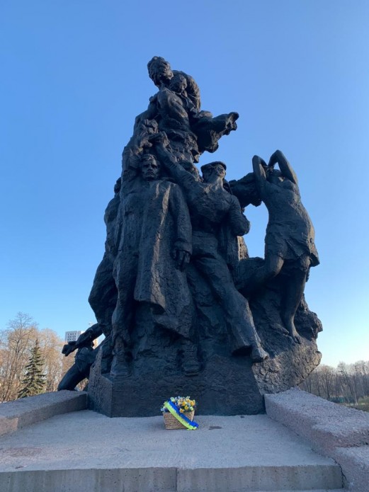 Лидер страны установил корзину цветов в Мемориальном комплексе "Бабий Яр" в Киеве. Также он возложил цветы к памятнику погибшим в Сырецком концлагере и памятному знаку "Память во имя будущего".