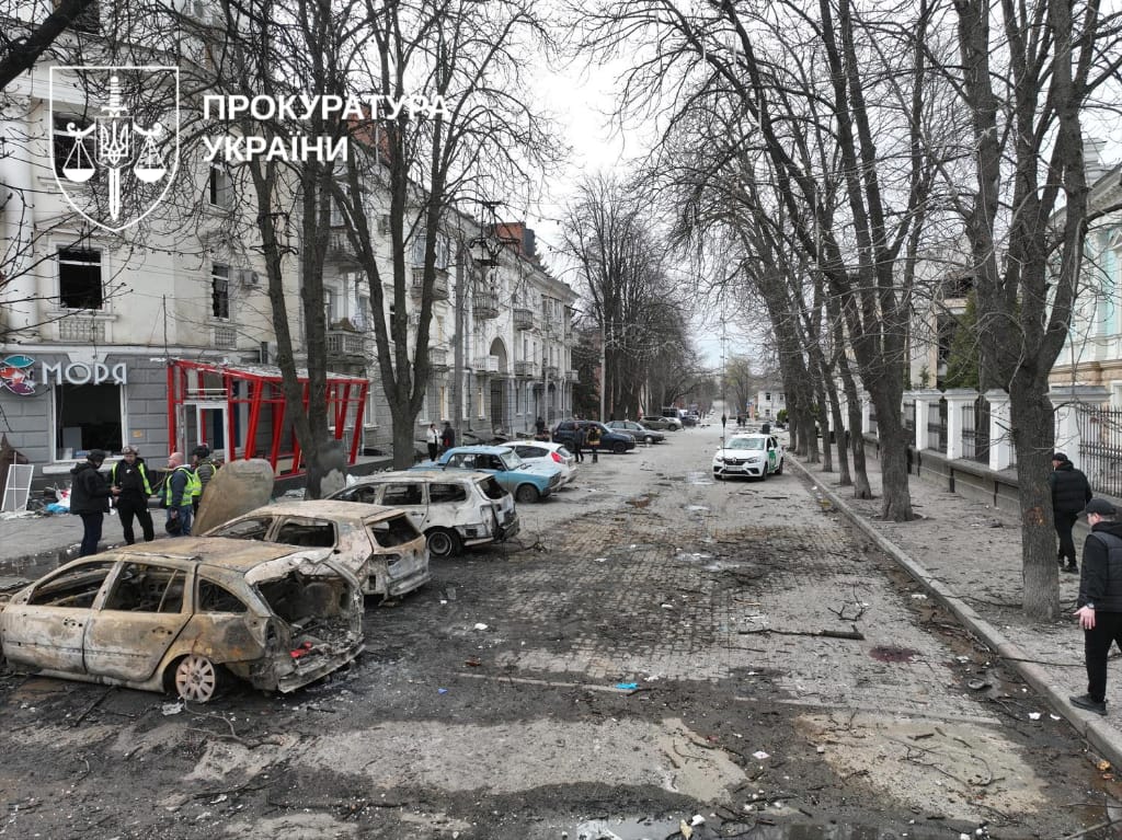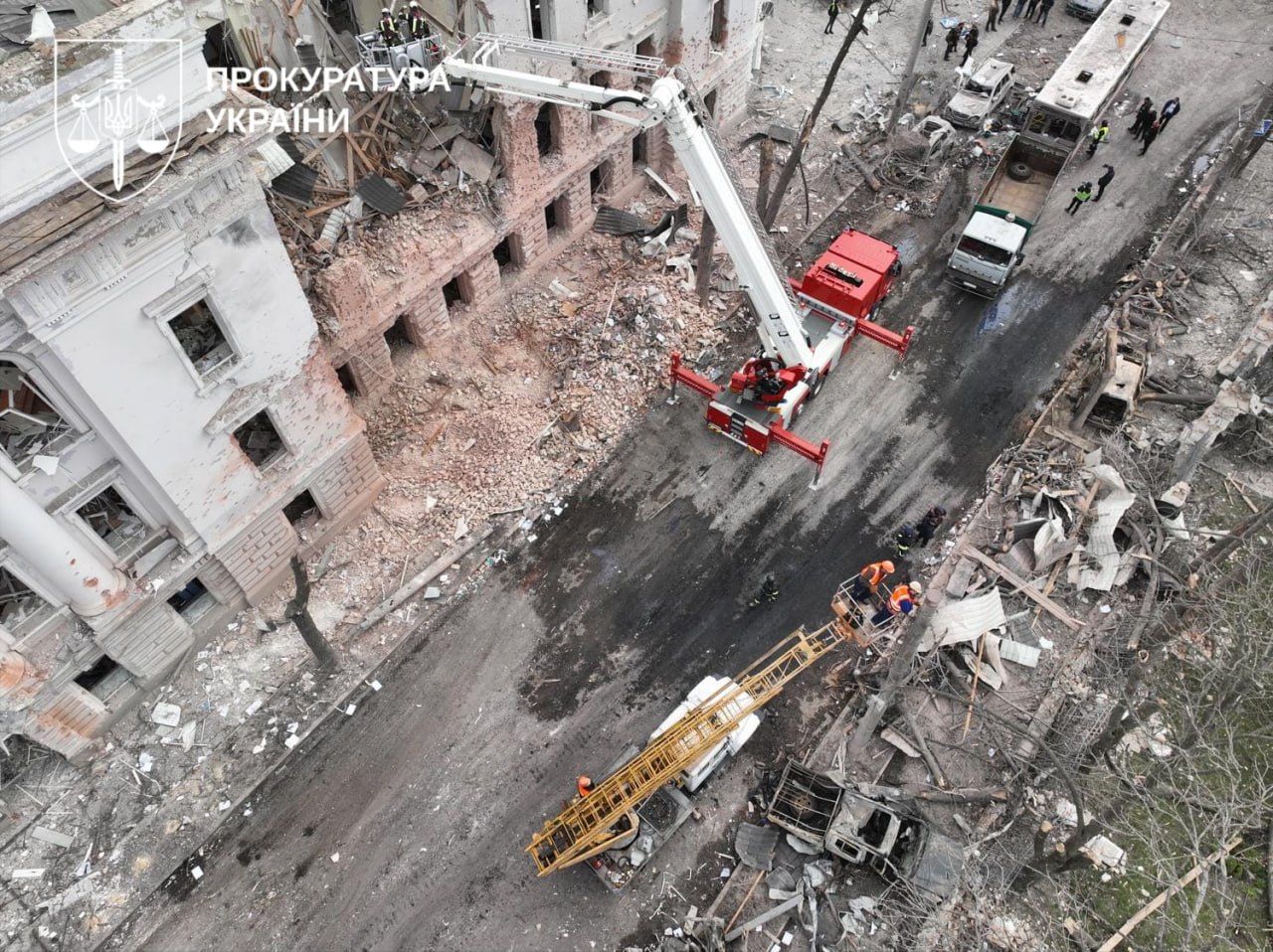 Удар также нанес значительные разрушения: повреждено более 70 зданий, среди которых исторические памятники, а также 36 автомобилей и автобус. Общий ущерб оценивается в 200 млн грн.