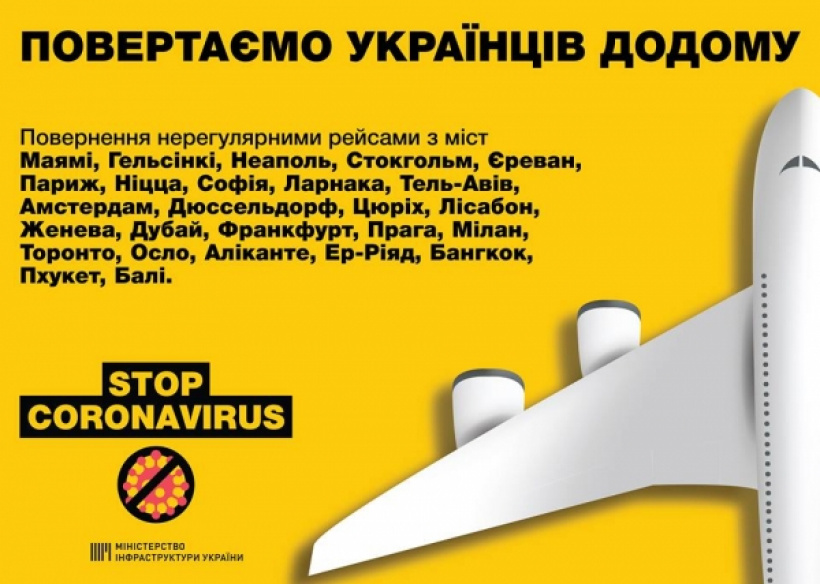 Министерство инфраструктуры анонсировало специальные рейсы в Украину из разных стран мира для возвращения граждан.