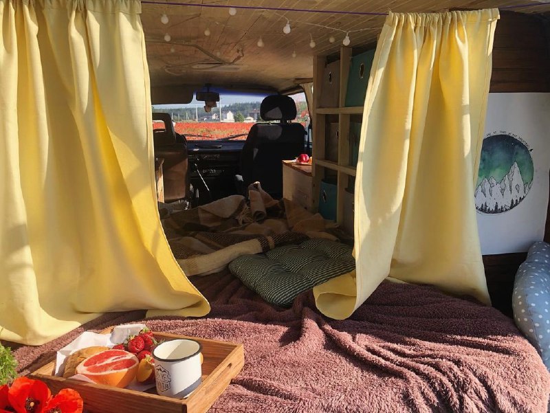 Авто они назвали "Булли". Его покрасили и оснастили мебелью. Таким образом получилось очень уютное место для путешествий.