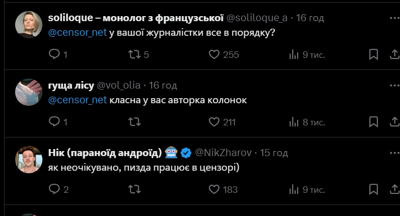 В комментариях пользователи Х показали профили журналистки в соцсетях, примеры ее публикаций, а также обращались в СБУ и полицию на предмет проверки журналистки, действительно ли она может реализовать свои угрозы. Также были обращения и к изданию, где она работает.