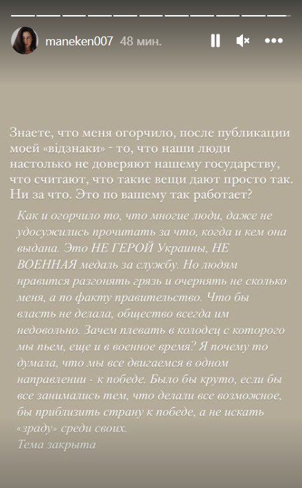 Фото своей награды Ксюша Манекен опубликовала в сториз Instagram.