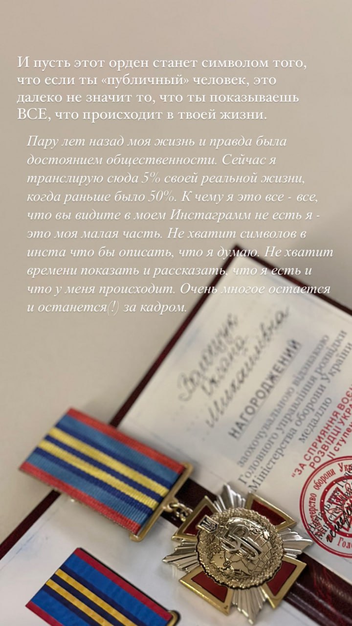 Медаль она получила еще в октябре прошлого года, но показала ее только после встречи с Подоляком, на которой обсуждались вопросы информационной войны и мотивации населения.