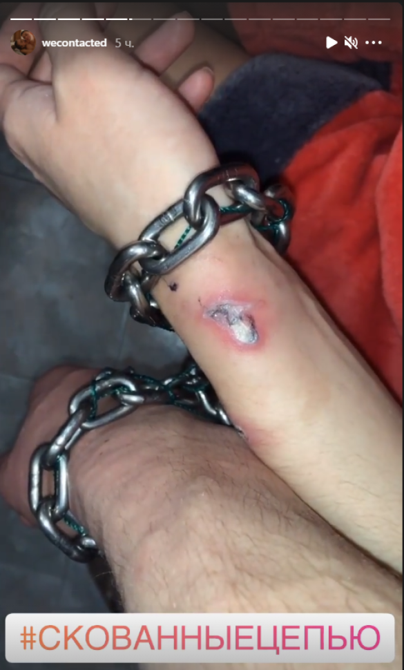 В частности, на руке девушки возникли язвы. Кожа была повреждена во время того, как их сковывали, а цепь растирает раны. Девушка жалуется на сильную боль. По словам пары, использование мазей и лекарств не помогает. В больнице сказали, что поводов для беспокойства нет.