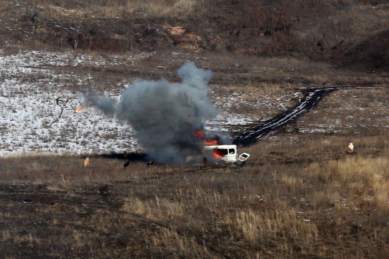 Украинские военные на Донбассе 15 февраля провели учения с применением противотанковых ракетных комплексов NLAW и гранатометов M-141.
