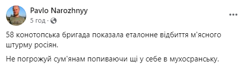 Военный эксперт Павел Нарожный назвал этот бой "эталонным отражением мясного штурма россиян".