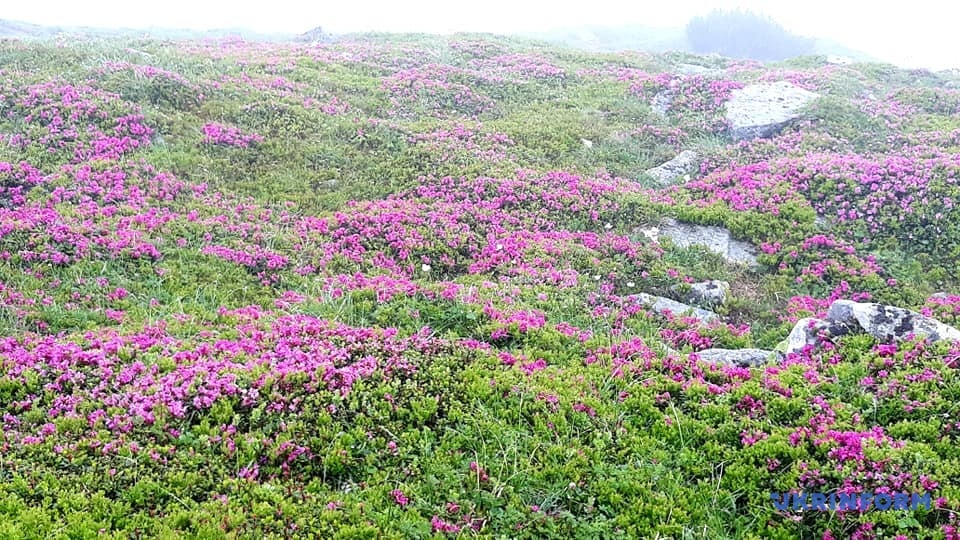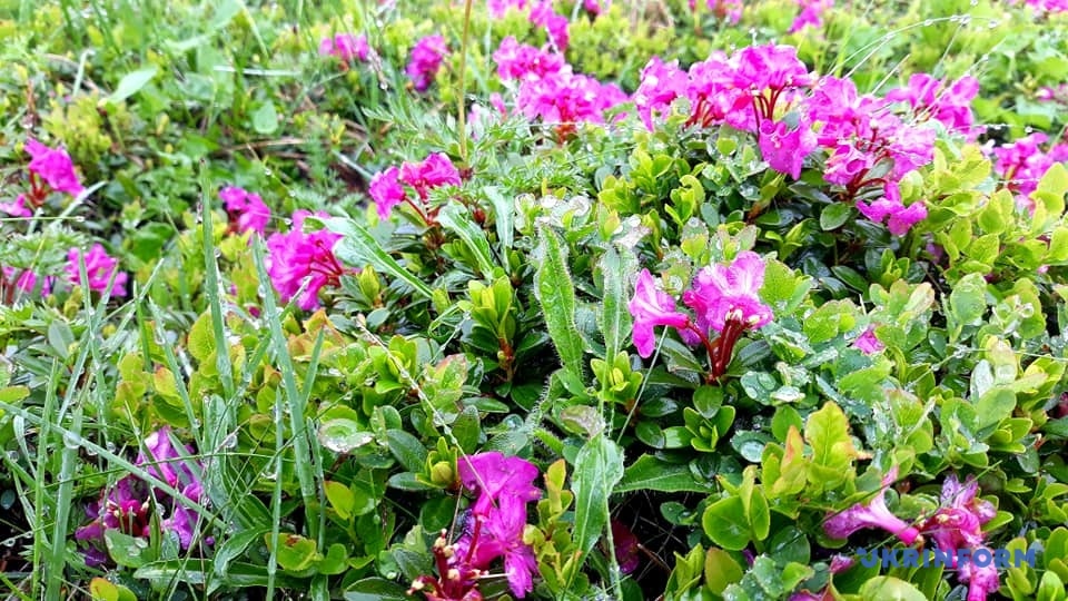 "В этом году цветение рододендронов немного запоздало из-за аномально долгой зимы в высокогорье Карпат, в минувшие выходные, 3-4 июля, мы с туристами наблюдали пик цветения карпатских рододендронов на Черногорском хребте у озера Бребенескул и вершинах двухтысячников Ребра и Гутин Томнатик", - говорит экскурсовод Сергей Прокоп.
