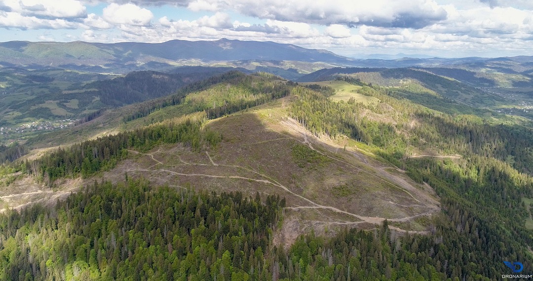 В среду, 17 июня, когда отмечается Всемирный день борьбы с опустыниванием и засухой, активисты провели аэросъемку на местах вырубки леса в Украинских Карпатах.