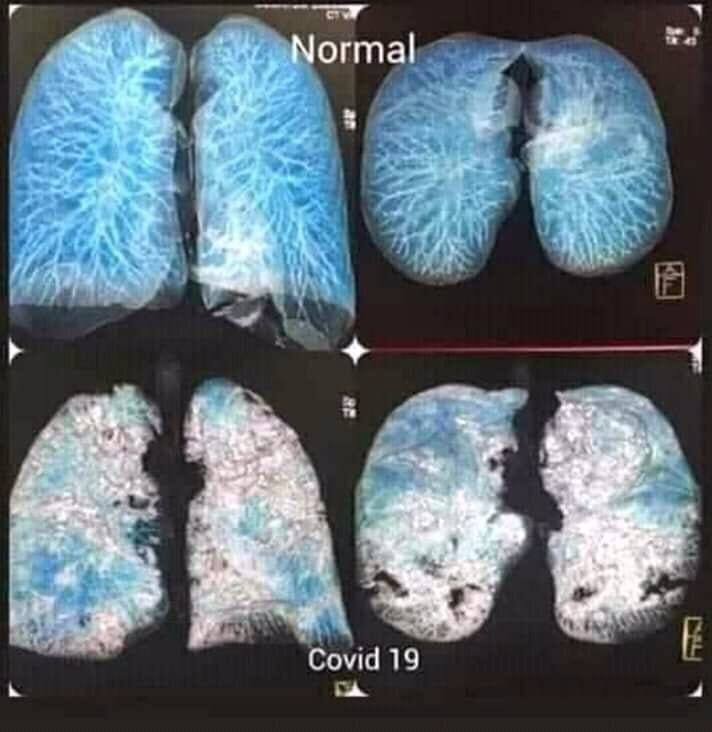 "Вот таким образом при коронавирусной инфекции легкие покрываются "матовым стеклом"…" - подписаны опубликованные фото.