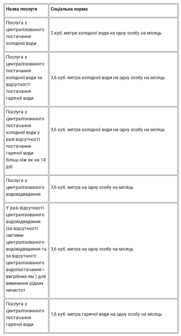 услуга по централизованному водоотводу: 3,6 кубометра на 1 человека в месяц.
