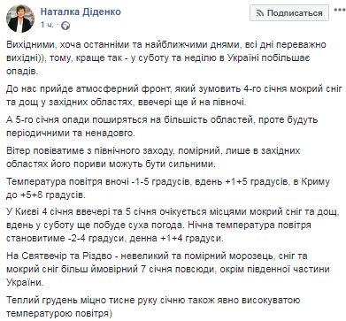 Об этом написала в Facebook синоптик Наталья Диденко.