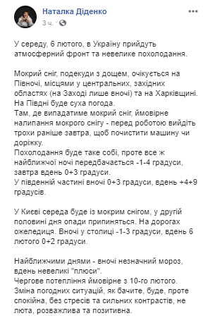 Об этом сообщила синоптик Наталья Диденко в Facebook.
