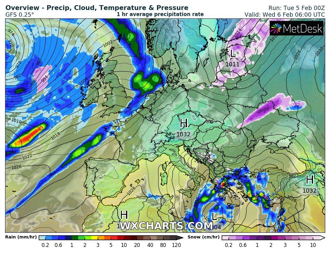 6 февраля в Украину придут атмосферный фронт и незначительное похолодание, местами ожидается мокрый снег с дождем.