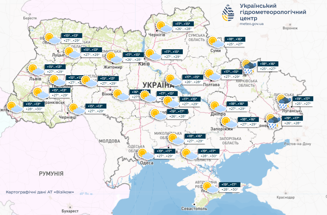 Температура ночью по Украине - от запада до центральных и восточных областей - будет достигать показателей до 13-18°, днем столбики термометра вырастут до 25-30°.