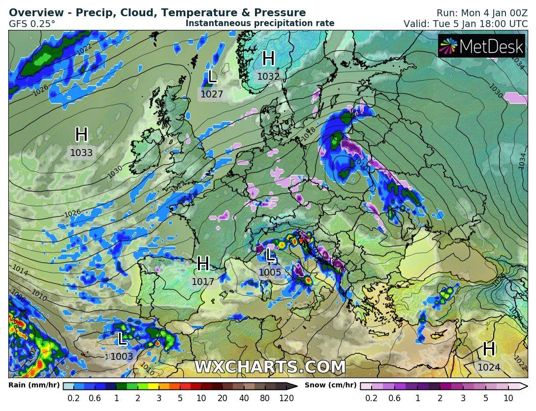 По ее словам, осадки 5 января прогнозируются в западных областях Украины, в Одесской, Николаевской, Винницкой, вечером в Житомирской, Киевской и Черкасской областях. На остальной территории Украины без существенных осадков.