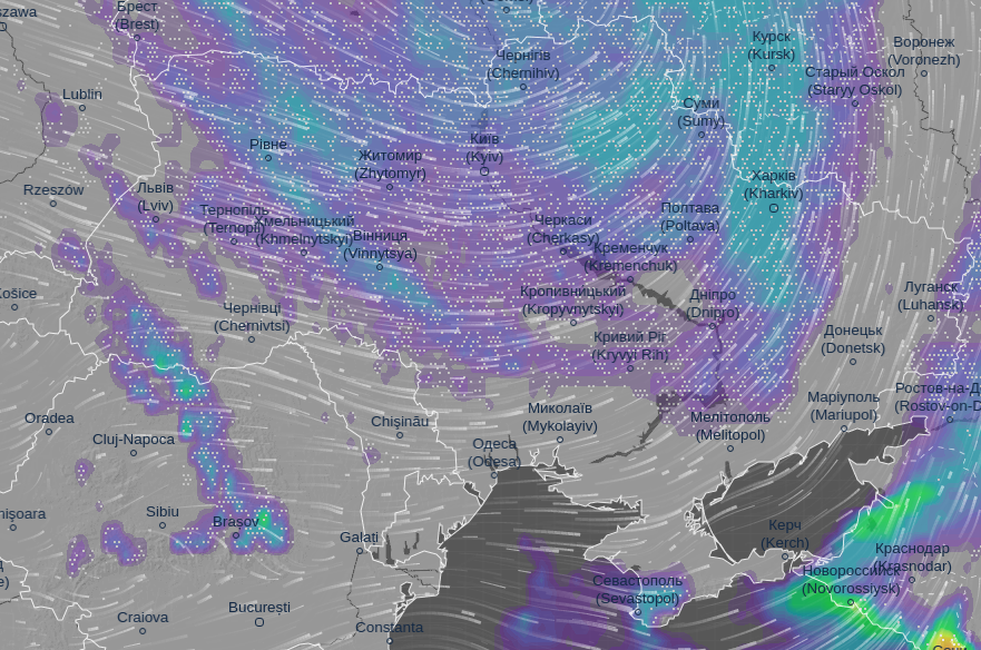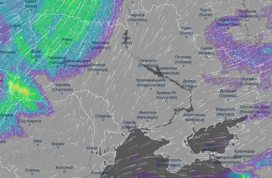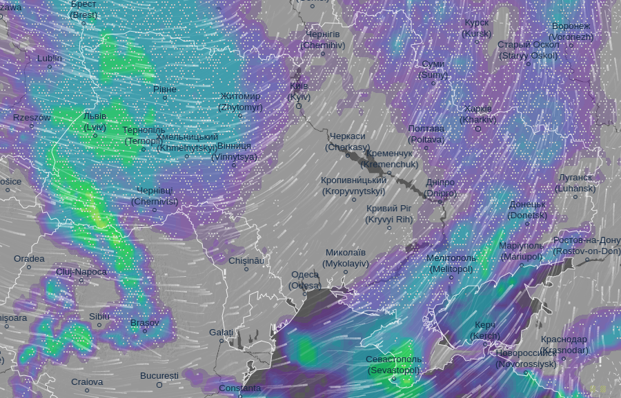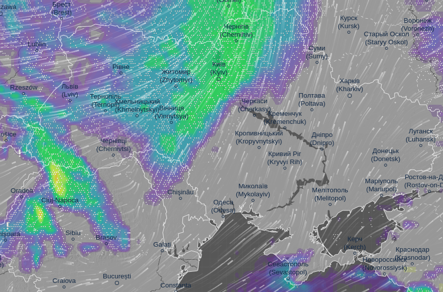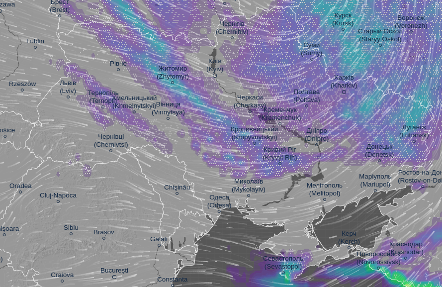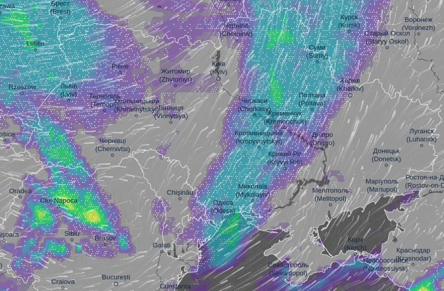 Об этом сообщает метеорологический сайт Ventusky.