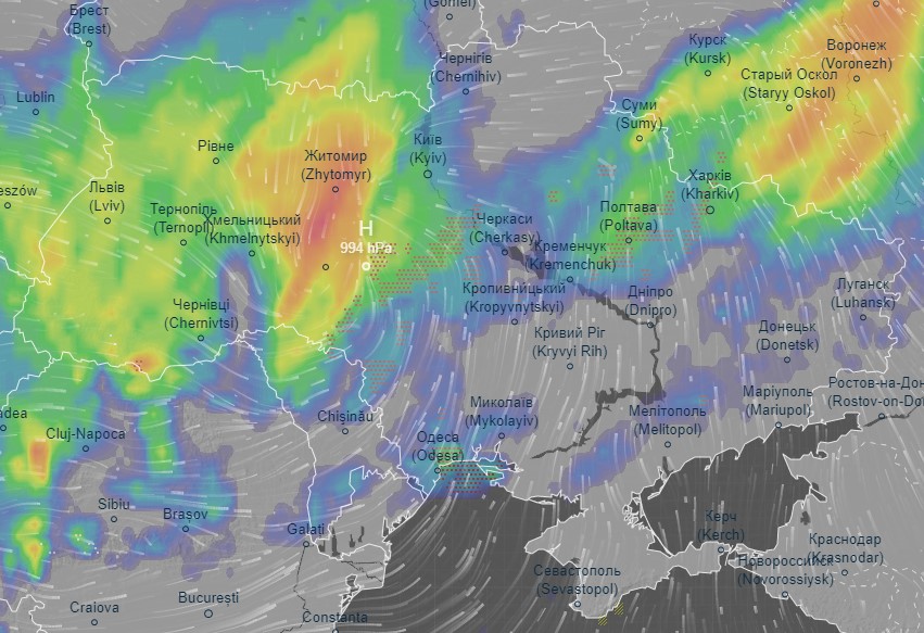 К 12:00 по киевскому времени синоптики обещают дожди в западных, центральных и частично северных областях Украины. Осадки, по прогнозам синоптиков, также затронут Киевщину. Средняя температура воздуха составит от +12 до +20 градусов.