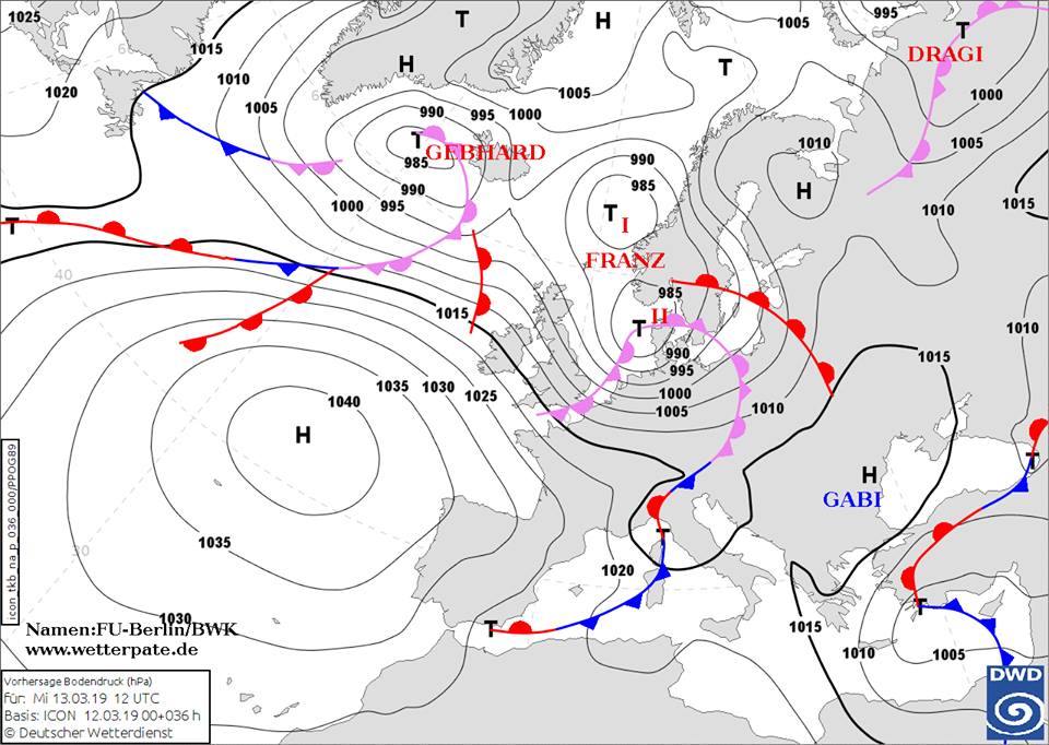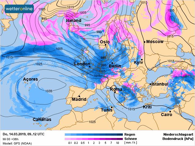 В четверг, 14 марта, в Украину придет атмосферный фронт из Польши, связанный с северным циклоном Franz.