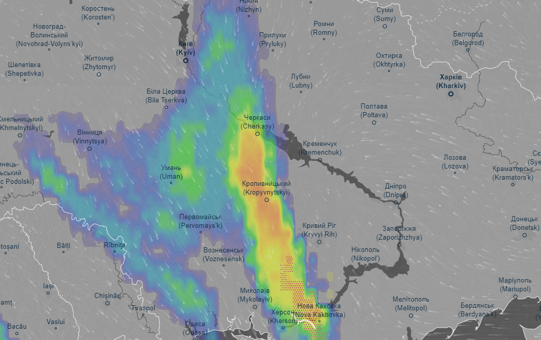 Об этом свидетельствуют данные на сайте мониторинга погоды Ventusky.