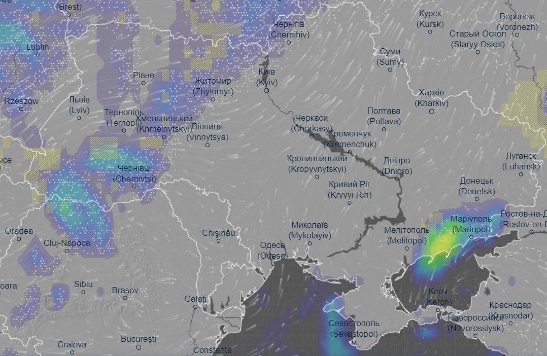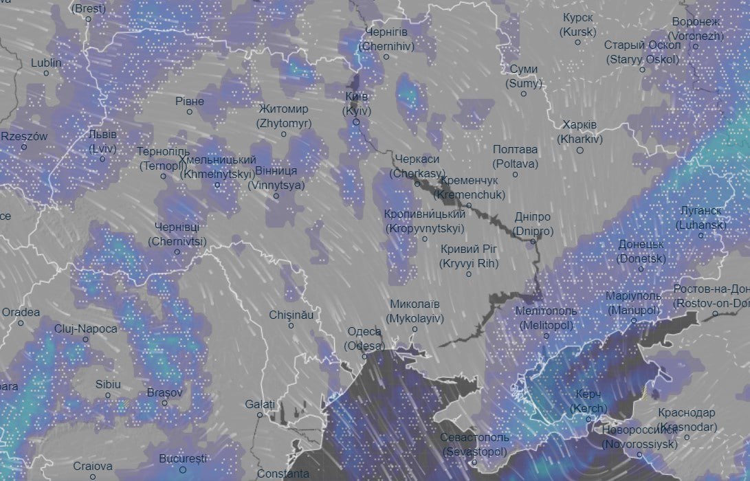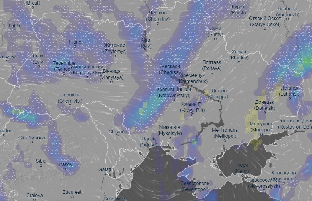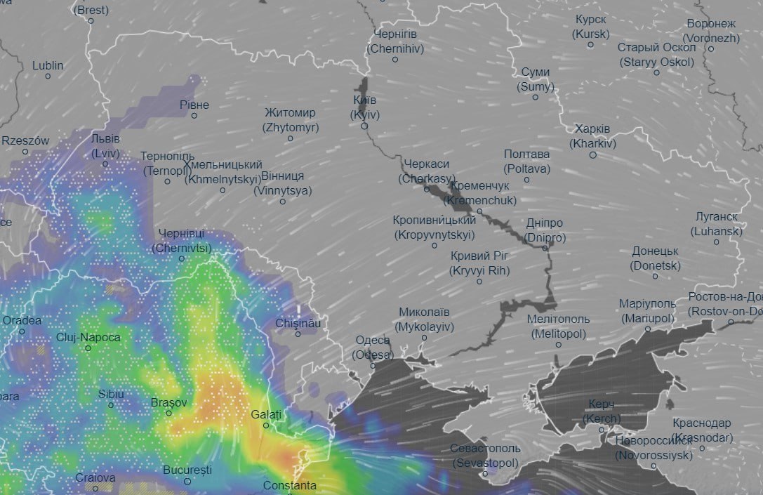 К вечеру осадки направятся восточнее, охватив Закарпатье, Буковину, Тернопольщину, Ровенщину, Хмельницкую, Житомирскую, частично Винницкую и Черниговскую области. Мокрый снег с дождем ожидается в Донецкой области.