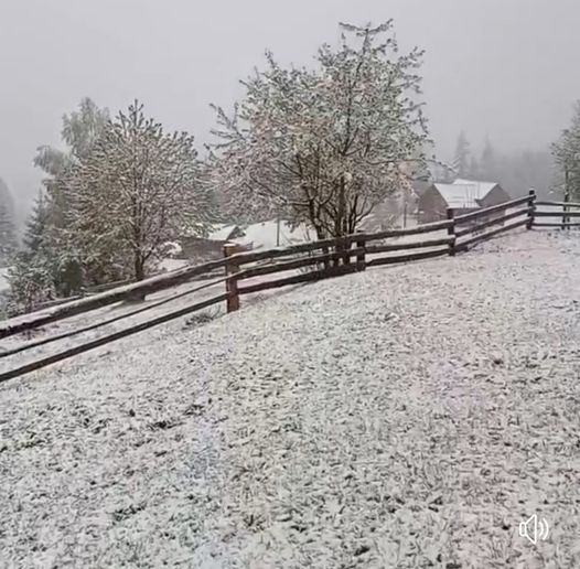 "После температурных рекордов почти в 27 градусов тепла - снова вернулась зима. В частности апрельский белый цвет на деревьях покрыл белым одеялом из снежинок на Верховинщине в селе Головы", - пишут местные СМИ.