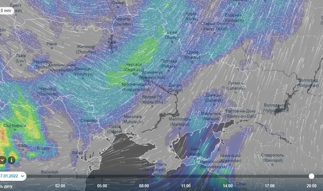 По информации радара, в Киеве ожидается снег с 15.00 и до 19.00 при температуре воздуха от 0... до -1 градуса при достаточно мощном ветре - до 20 метров в секунду. Также будет снег ночью, однако к утру осадки прекратятся.