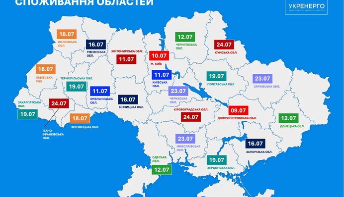 • 24 июля: Житомирская, Ивано-Франковская, Сумская, Кировоградская области.