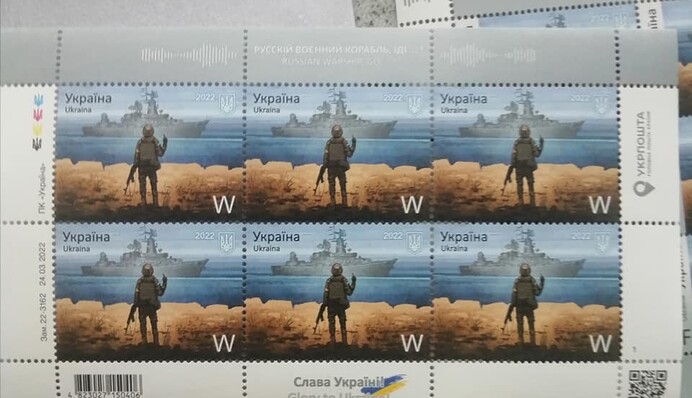 Во вторник, 12 апреля, "Укрпочта" ввела в обращение почтовые марки "Русский военный корабль, иди на…!". Это будет первая марка, выпущенная в условиях военного положения.