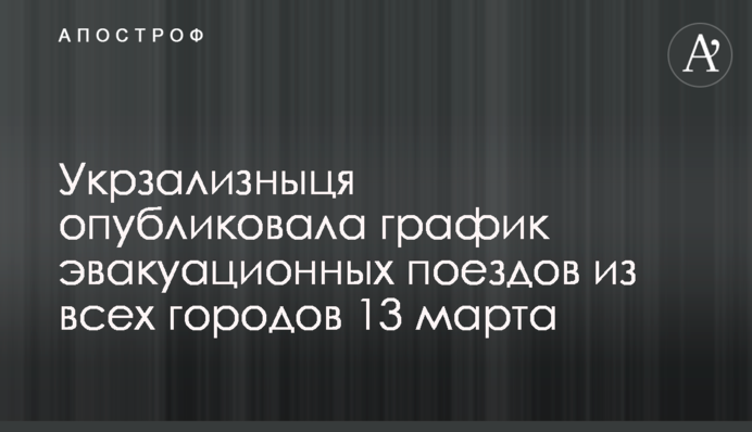 "Укрзализныця", что остается одним из наиболее доступных транспортов для эвакуации населения из регионов, где ведутся активные боевые действия, опубликовала расписание движения поездов на 13 марта.