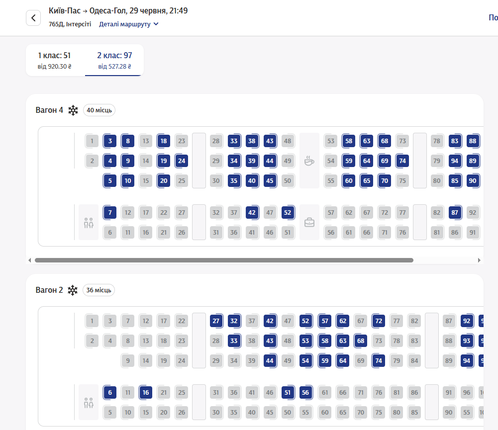 В продаже есть билеты на поезд в вагоны 1 и 2 классов по цене: