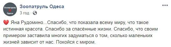 В субботу, 14 марта, умерла 23-летняя украинская зоозащитница и волонтер Яна Рудомино, которая боролась с онкологическим заболеванием в клиниках Киева и Израиля.