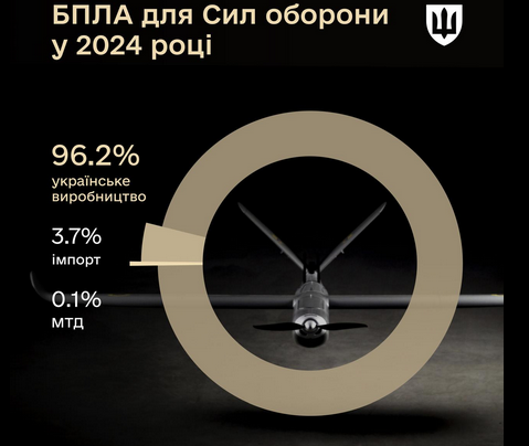 "96.2% - именно такую долю среди всех БПЛА для Сил обороны составляли украинские дроны в этом году", - сообщил глава Минобороны.
