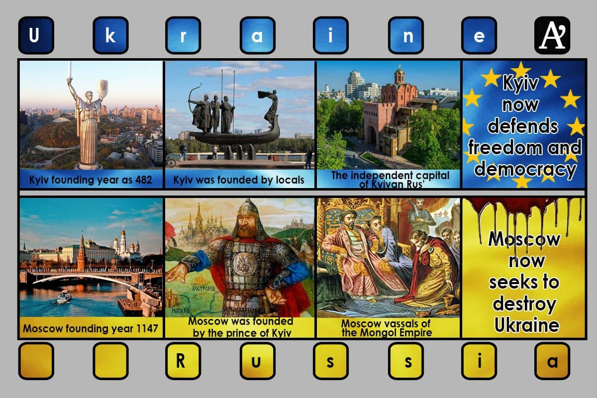 Основателем Киева являлся князь из местной династии, основателем Москвы – пришедший из Киева и похороненный в Киеве (в церкви Спаса на Берестове) Юрий Долгорукий.