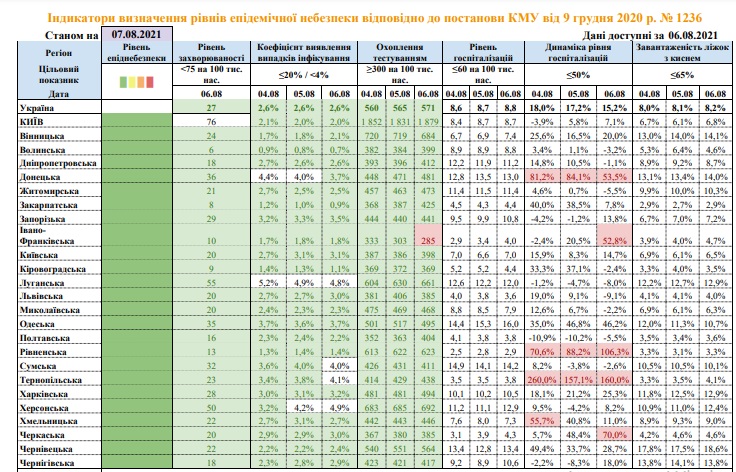 По состоянию на субботу, 7 августа, вся Украина находится в "зеленой" зоне карантина. Однако, в 5 областях один из эпидемиологических показателей вышел за пределы нормы, что может привести к выходу из безопасной зоны.