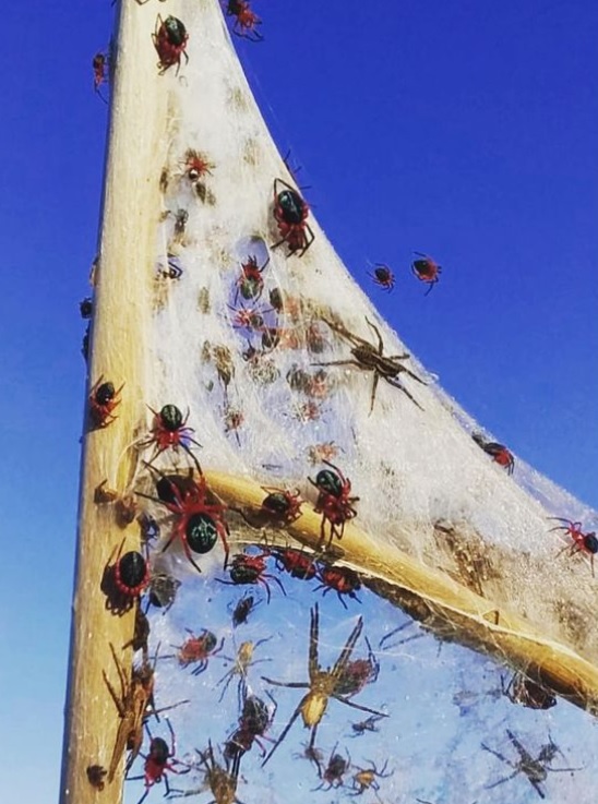 Старший куратор по энтомологии Мельбурнского музея доктор Кен Рокен объяснила, что пауки используют такие шелковые нити для возможности подняться в воздух с потоком ветра и перемещаться таким способом по местности. По ее словам, они могут перелетать так и 100 километров от исходной точки.