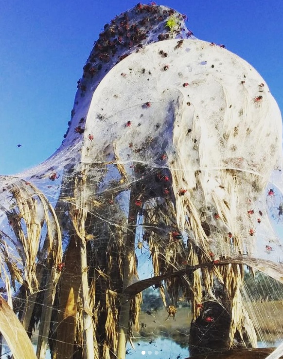 Отмечается, пауки накрыли паутиной дорожные знаки, высокую траву, кусты, деревья и обочины дорог всего штата Виктория. Это объясняется тем, что таким образом насекомые хотели спастись от наводнения.