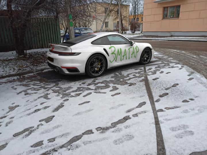 В Минске, где с августа продолжаются протесты против фальсификаций на выборах президента и подавления оппозиционных настроений, сторонники президента Беларуси Александра Лукашенко разбили и разрисовали Porsche 911 Turbo S.