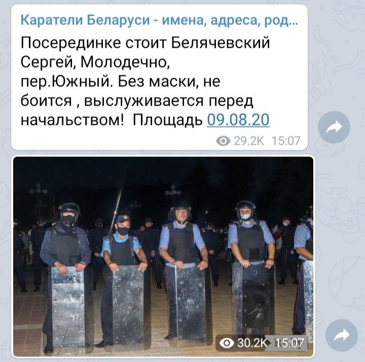 Соответствующие данные публикуются в Telegram-канале "Каратели Беларуси - имена, адреса и родственники".