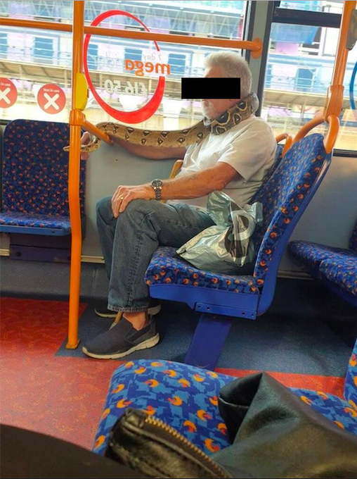 В Манчестере 46-летний мужчина был замечен в автобусе с питоном, которого использовал вместо защитной маски.