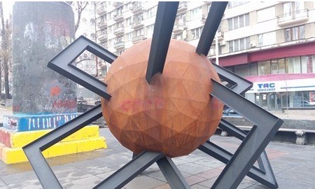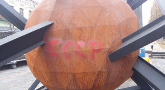 Так, на шаре инсталляции в нескольких местах неизвестные красной краской написали слово "СССР".