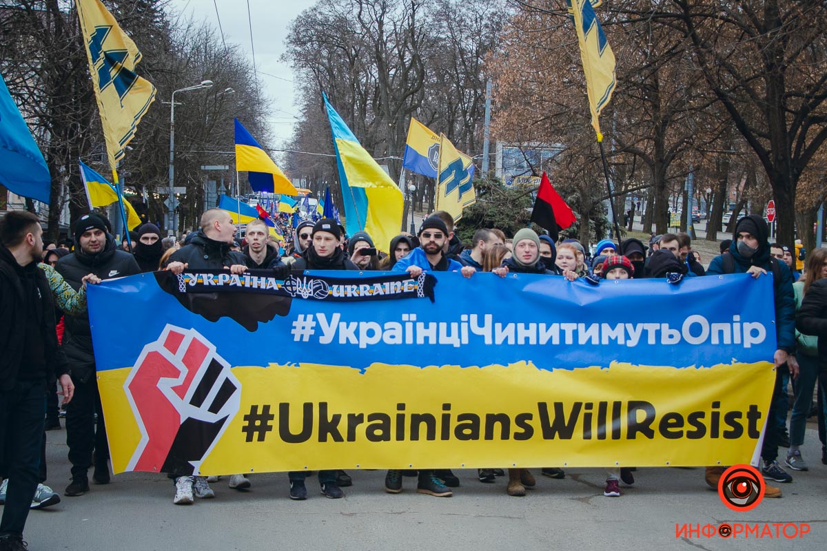 В субботу, 19 февраля, сотни жителей Днепра взяли участие в "Марше единства", который проводился в знак консолидации общества перед российскими оккупантами.