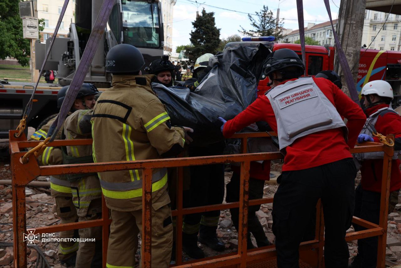 19 апреля поисково-спасательная операция на месте российского ракетного удара по Днепру продолжается. Сотрудники Госслужбы по чрезвычайным ситуациям деблокировали из-под завалов многоэтажки тело погибшей женщины.