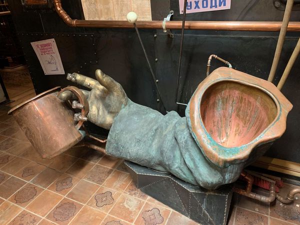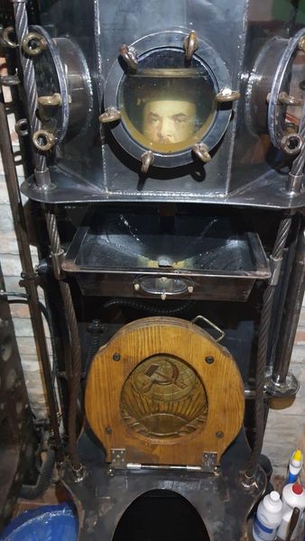 Символ же Советского Союза - серп и молот - разместили на сиденье для унитаза. В ход пустили и голову Ленина - ее поместили за прозрачное стекло в сливной бачок.