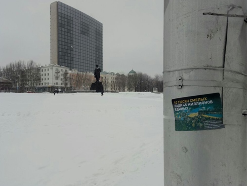 Надпись на листовках гласит: "10 тысяч смелых ради 45 миллионов единых".