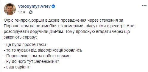 Арьев предложил несколько вариантов того, по его мнению, из-за чего закроют дело. В частности он привел вариант такси и авто, которые прятались от видеофиксации нарушений ПДД.