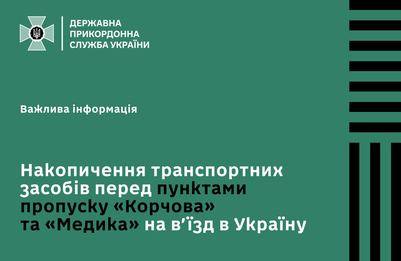 "Внимание. Отмечается накопление транспортных средств перед пунктами пропуска "Корчева" и "Медика" на въезд в Украину", - пишут пограничники и советуют выбирать менее загруженные пункты пропуска поблизости, чтобы уменьшить время ожидания.