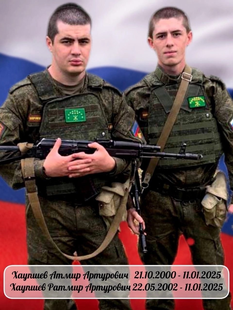 Последняя пара, которую нашли, исследовав списки, это рядовые Хаупшевы Атмир и Ратмир (22 и 24 года). Они из 6-го танкового полка 90-й танковой дивизии. Погибли также в Белгородском пограничье 11 января 2025 года.