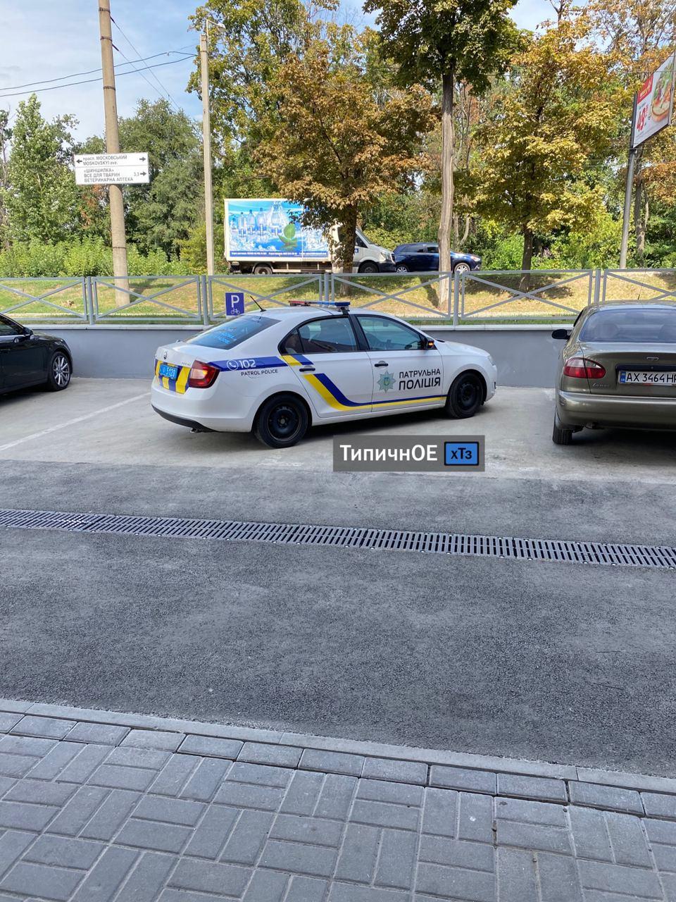 В Харькове полицейские поставили свой автомобиль, заняв сразу два парковочных места. На замечание они ответили грубо.