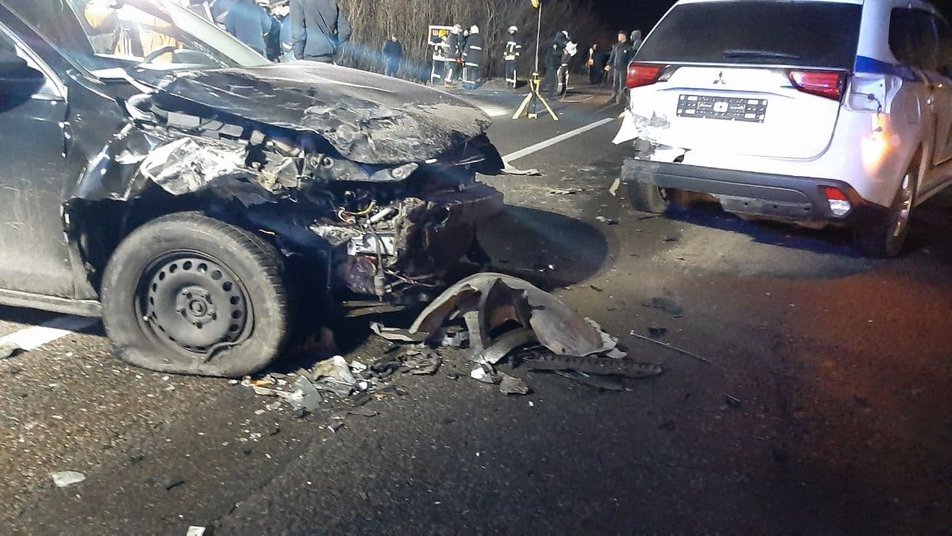 Один из участников ДТП сообщил, что сначала на дороге столкнулись две легковушки, сразу туда прибыли правоохранители, во время оформления аварии в машину полиции врезался еще один легковой автомобиль. Затем место происшествия пытался объехать бензовоз - не справился с управлением и вылетел в кювет.