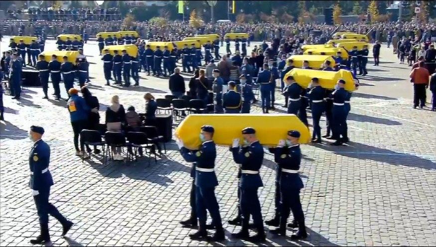 Во вторник, 6 октября, в Харькове состоялась церемония прощания с экипажем и курсантами, погибшими в результате крушения Ан-26 в Чугуеве. В жалобных мероприятиях принял участие президент Украины Владимир Зеленский.